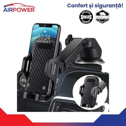 Suport telefon auto cu ventuza, negru